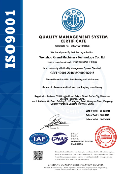 Based in the mechanical industrial zone in Wanquan town, the national advanced manufacturing base, Wenzhou Grand Machinery Technology Co., Ltd is an integrated enterprise specializing in developing, manufacturing, selling, and offering after-sales services on pharmaceutical&packaging, and liquid packaging machinery. Since our establishment, we have provided quality machines for thousands of customers at home and abroad. Thanks to the stable performance and satisfying after-sales services, we have gained rave reviews from them.